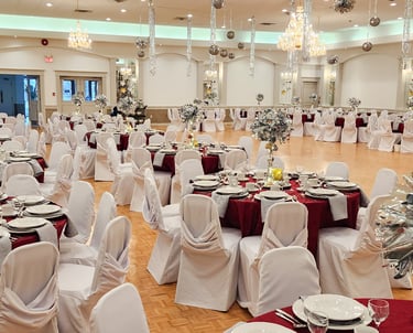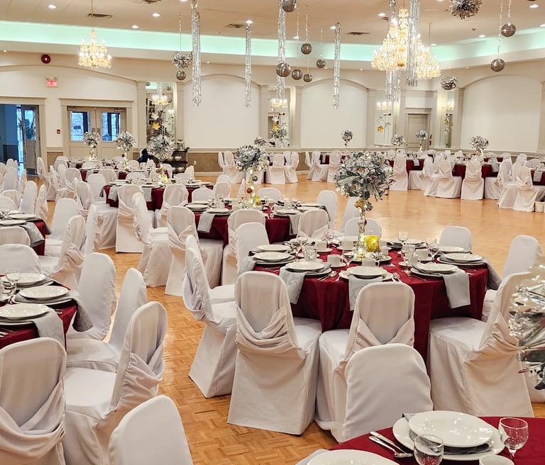 We specialize in hosting a wide range of events, including weddings, banquets, bridal and baby showers, charity evenings, conventions, auctions, fundraisers, meetings, and parties. We provide comprehensive wedding packages. The main banquet hall can accommodate up to 350 guests. Our culinary offerings, provided by PNUC, include family-style table service, platter presentations, and buffet options. Additionally, we offer a full bar service and an extensive selection of wedding decorations.